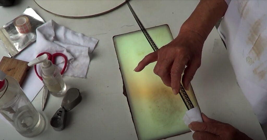 En las imágenes siguientes podemos ver el trabajo de restauración digital de la imagen. La cinta presentaba un ligero virado hacia el magenta debido al deterioro de la emulsión, así como rayas verticales y raspones que fueron corregidos en la medida de lo posible: